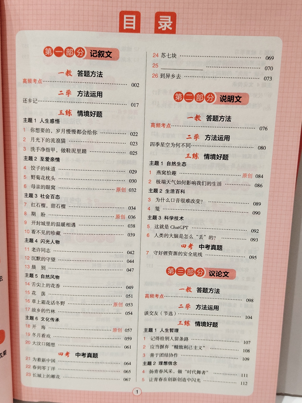 一本现代文阅读技能训练100篇中考